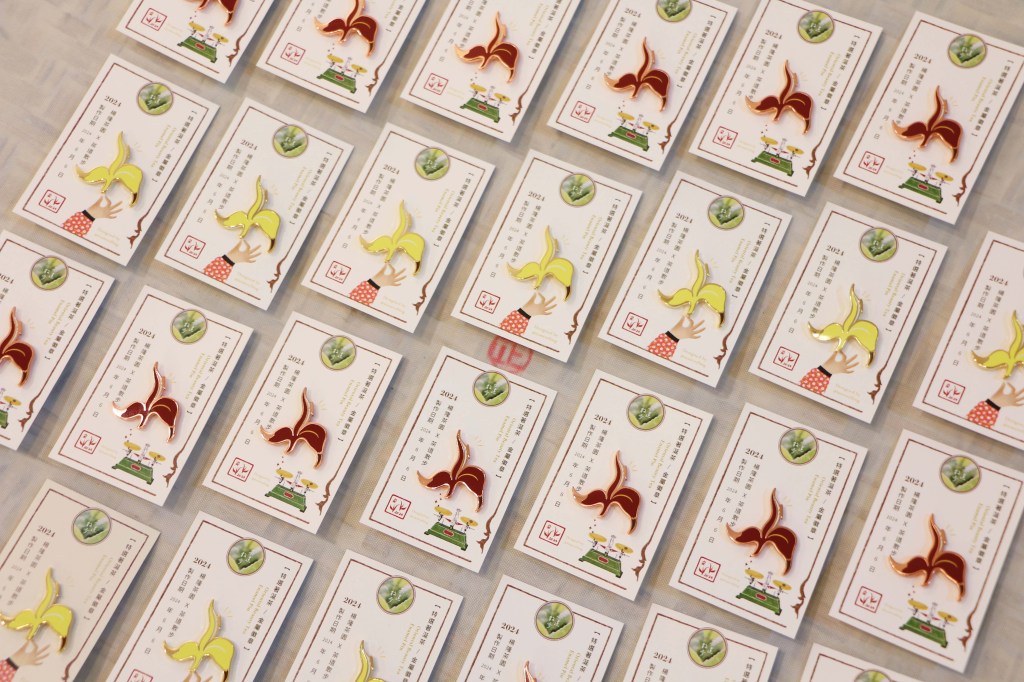 製作東方美人茶的葉片型態和其他茶類很不一樣,尺寸、顏色以及做好的茶乾外型,更像一朵朵的小花 ✿ 因此暨 5 款顏色的茶葉徽章之後,今年設計了東方美人茶專屬的圖案♡